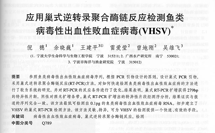 應(yīng)用巢式逆轉(zhuǎn)錄聚合酶鏈反應(yīng)監(jiān)測(cè)魚類病毒性出血性敗血癥病毒(VHSV)