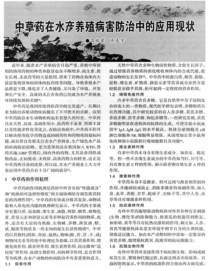 中草藥在水產(chǎn)養(yǎng)殖病害防治中的應(yīng)用現(xiàn)狀1