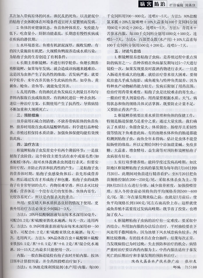 框鏡鯉粘孢子蟲(chóng)病防治新技術(shù)2