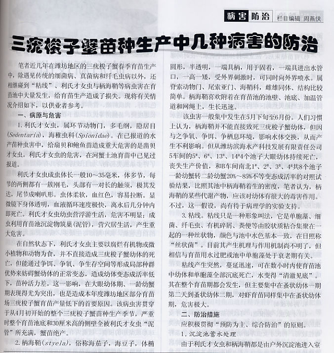 三疣梭子蟹苗種生產(chǎn)中幾種病害的防治1