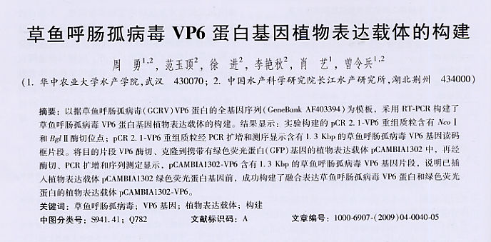草魚呼腸孤病毒VP6蛋白基因植物表達(dá)載體的構(gòu)建
