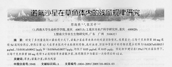 諾氟沙星在草魚體內(nèi)的殘留規(guī)律研究