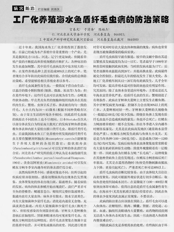 工廠化養(yǎng)殖海水魚盾纖毛蟲病的防治策略1