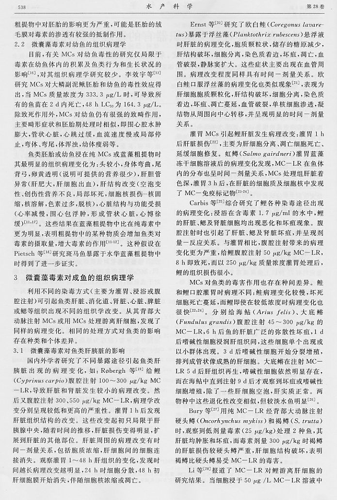 微囊藻毒素對魚類組織器官的毒理學(xué)研究進(jìn)展2