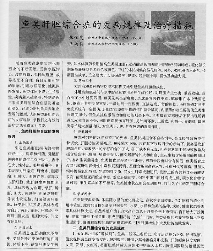 魚(yú)類(lèi)肝膽綜合癥的發(fā)病規(guī)律及治療措施1