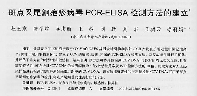 斑點叉尾鮰皰疹病毒PCR-ELISA檢測方法的建立