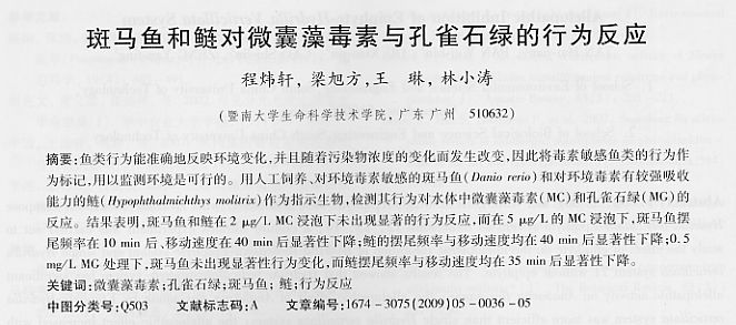 斑馬魚(yú)和鰱對(duì)微囊藻毒素與孔雀石綠的行為反應(yīng)