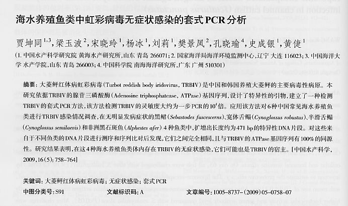 海水養(yǎng)殖魚類中虹彩病毒無癥狀感染的套式PCR分析