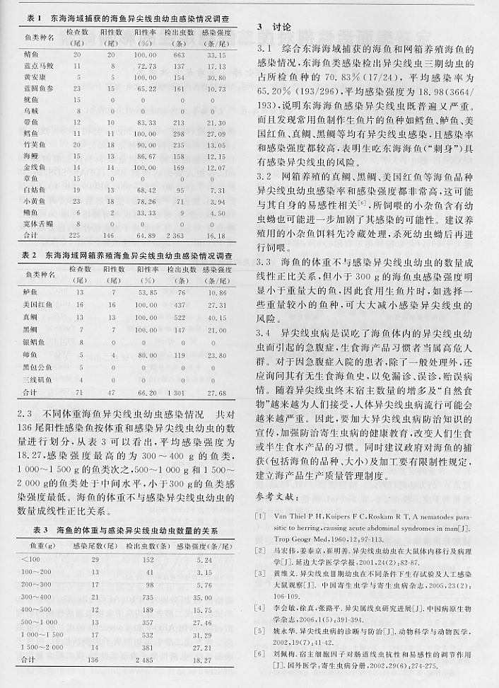 東海海魚異尖線蟲感染的初步調查2
