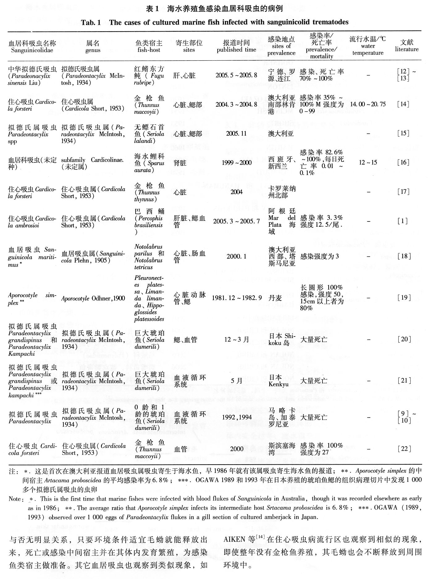 海水魚(yú)血居科Sanguinicolidae吸蟲(chóng)病的研究現(xiàn)狀3
