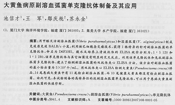 大黃魚(yú)病原副溶血弧菌單克隆抗體制備及其應(yīng)用