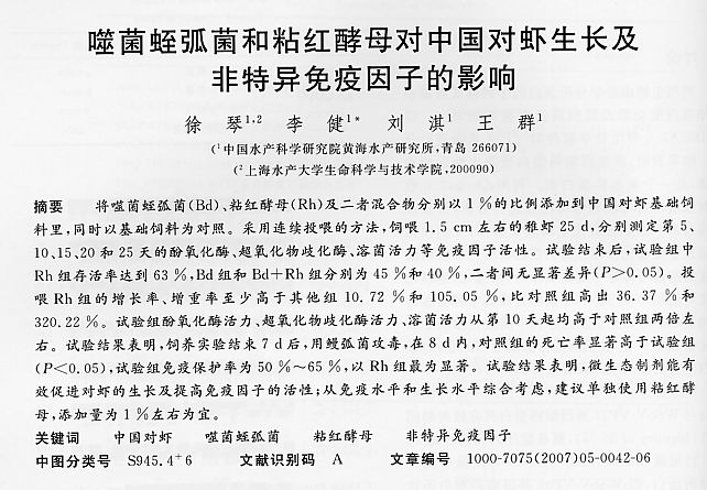 噬菌蛭弧菌和粘紅酵母對中國對蝦生長及非特異免疫因子的影響 ()