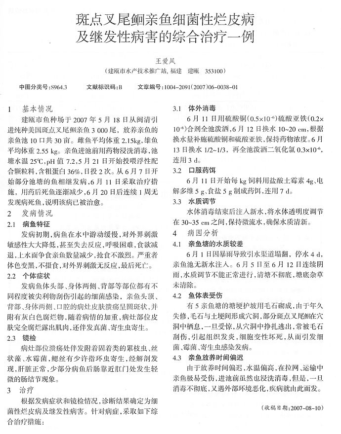 斑點(diǎn)叉尾鮰親魚細(xì)菌性爛皮病及繼發(fā)性病害的綜合治療一例
