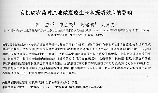 有機(jī)磷農(nóng)藥對(duì)滇池微囊藻生長(zhǎng)和攝磷效應(yīng)的影響