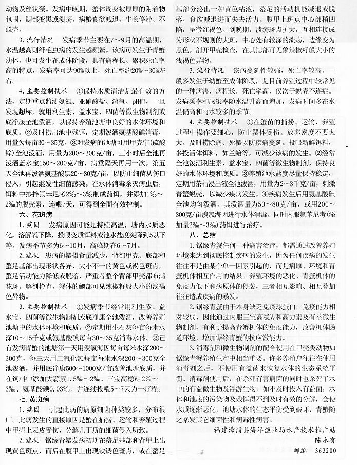 人工養(yǎng)殖鋸緣青蟹的主要疾病及控制技術(shù)2