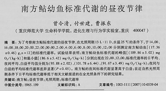 南方鲇幼魚(yú)標(biāo)準(zhǔn)代謝的晝夜節(jié)律
