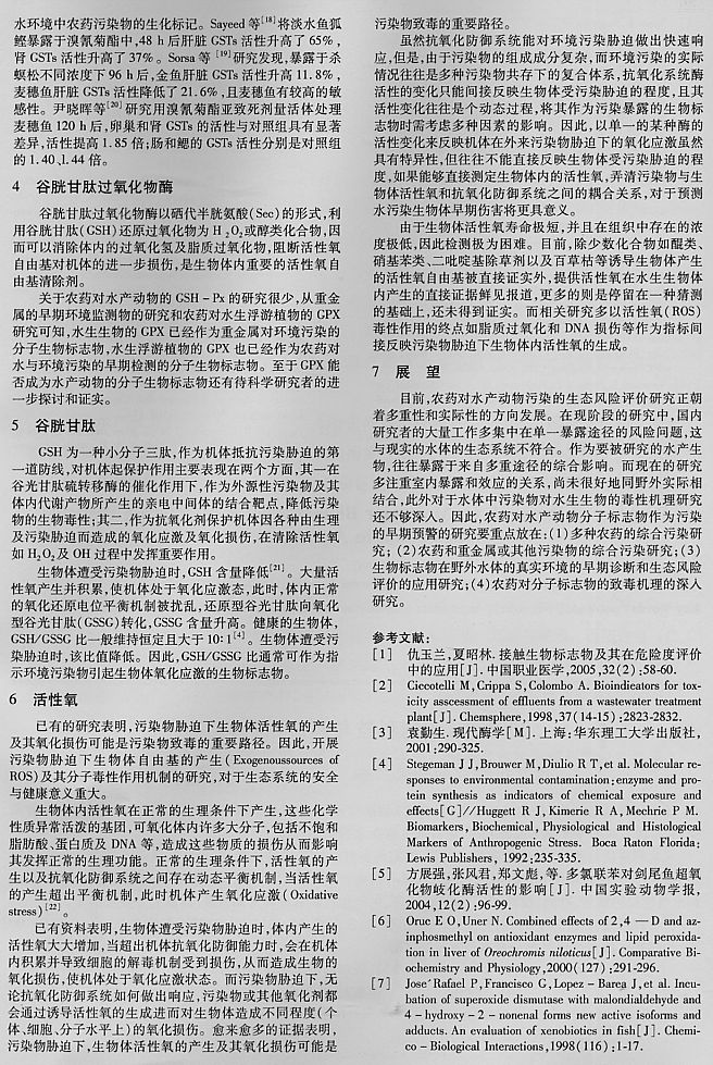 農(nóng)藥對水產(chǎn)動物污染的生物標志物的研究進展2