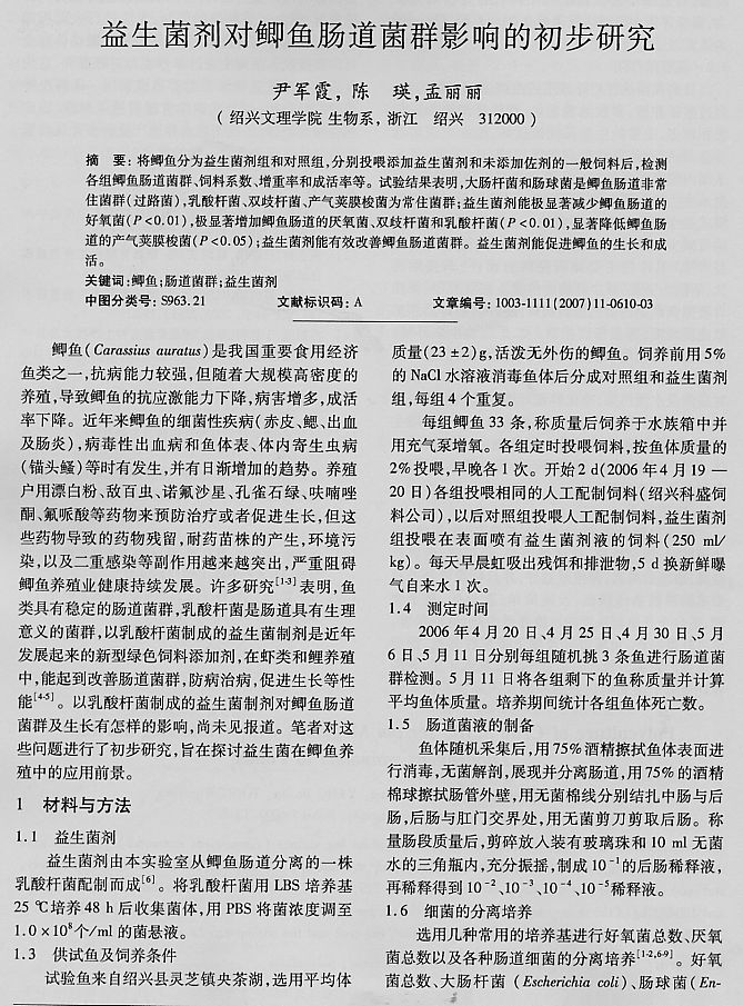 益生菌劑對鯽魚腸道菌群影響的初步研究1