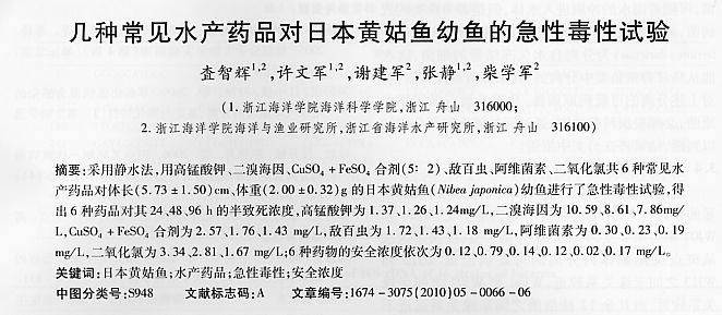 幾種常見水產(chǎn)藥品對日本黃姑魚幼魚的急性毒性試驗