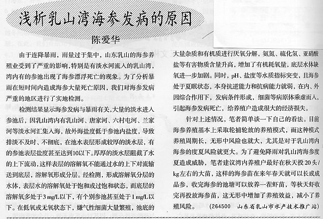 淺析乳山灣海參發(fā)病的原因