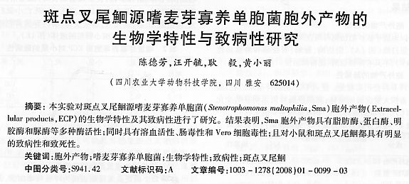 斑點(diǎn)叉尾鮰源嗜麥芽寡養(yǎng)單胞菌胞外產(chǎn)物的生物學(xué)特征與致病性研究
