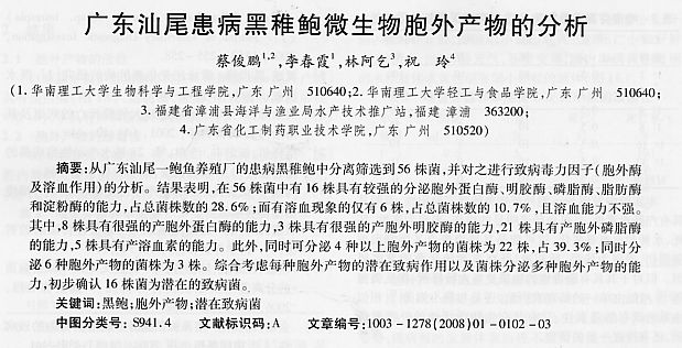 廣東汕尾患病黑稚鮑微生物胞外產(chǎn)物的分析