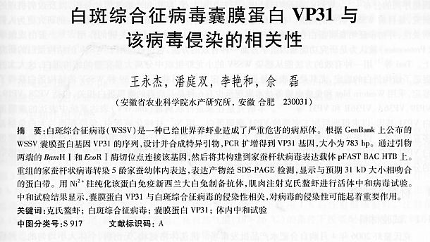 白斑綜合征病毒囊膜蛋白VP31與該病毒侵染的相關(guān)性