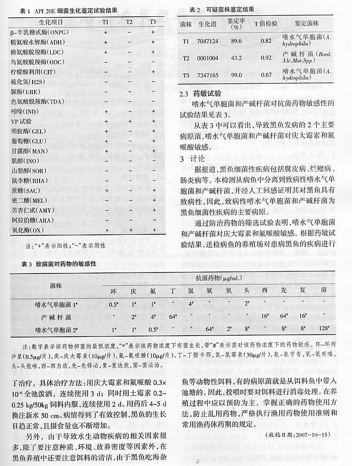 黑魚病原菌的分離鑒定及防治藥物的篩選2