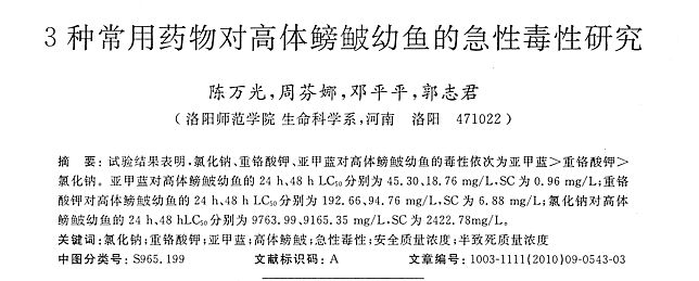 3中常用藥物對高體鰟鮍幼魚的急性毒性研究