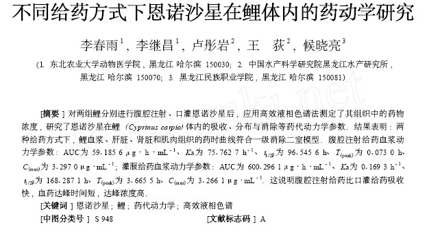 不同給藥方式下恩諾沙星在鯉體內(nèi)的藥動學(xué)研究