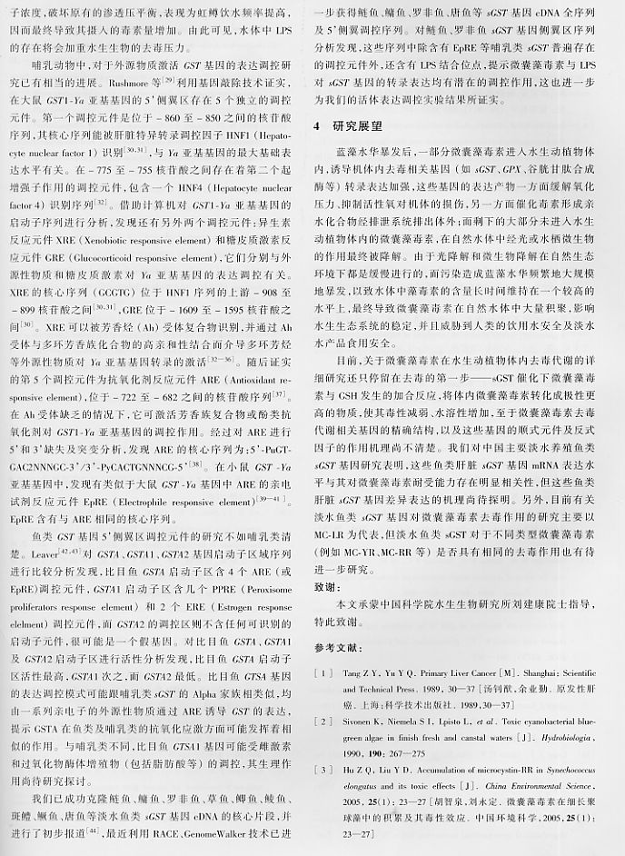 水產(chǎn)生物對微囊藻毒素去毒分子機(jī)理及調(diào)控因子研究4