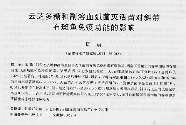 云芝多糖和副溶血弧菌滅火苗對斜帶石斑魚免疫功能的影響