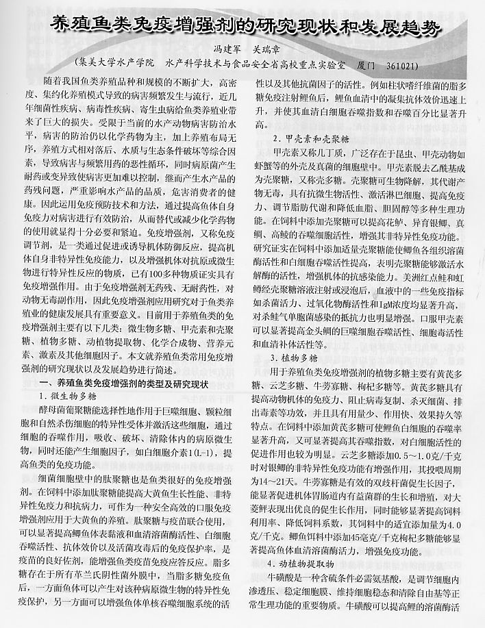 養(yǎng)殖魚類免疫增強(qiáng)劑的研究現(xiàn)狀和發(fā)展趨勢(shì)1