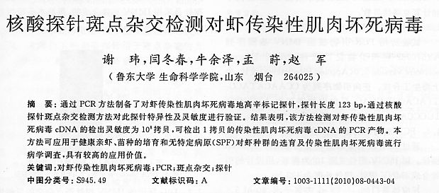 核酸探針斑點(diǎn)雜交檢測(cè)對(duì)蝦傳染性肌肉壞死病毒