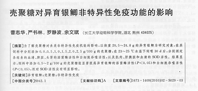 殼聚糖對異育銀鯽非特異性免疫功能的影響