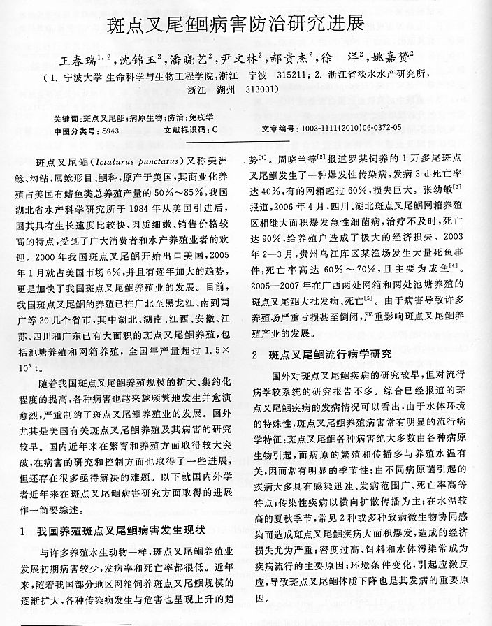 斑點(diǎn)叉尾鮰病害防治研究進(jìn)展1