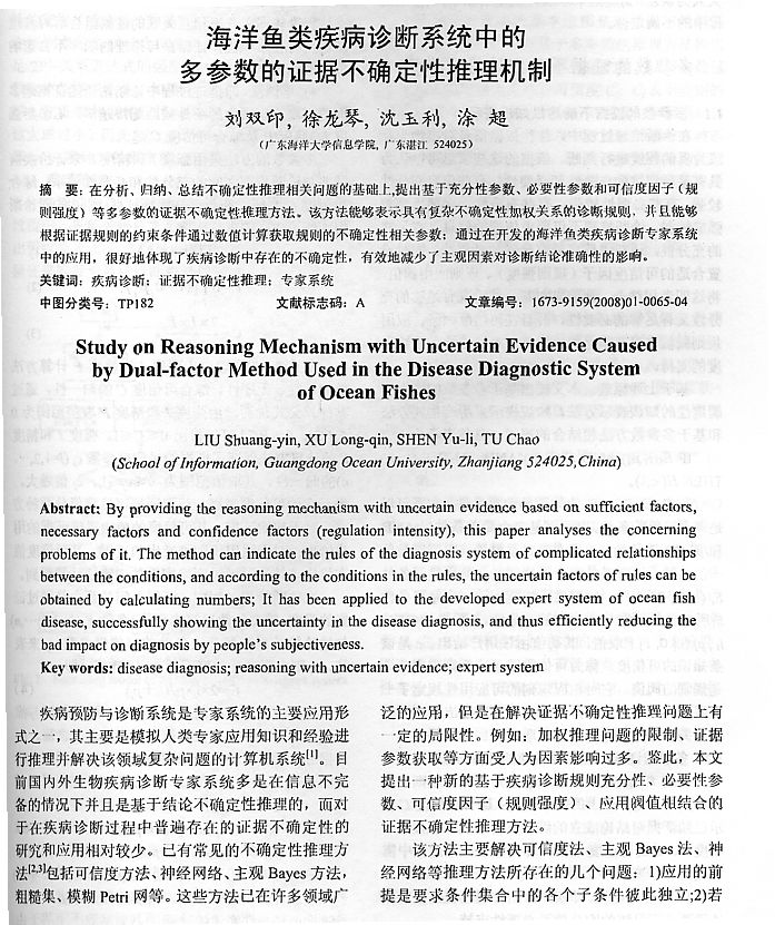 海洋魚(yú)類(lèi)疾病診斷系統(tǒng)中的多參數(shù)的證據(jù)不確定性推理機(jī)制1