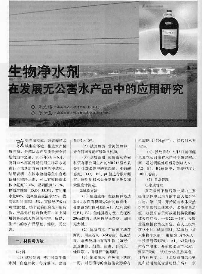 生物凈水劑在發(fā)展無公害水產(chǎn)品中的應(yīng)用研究1