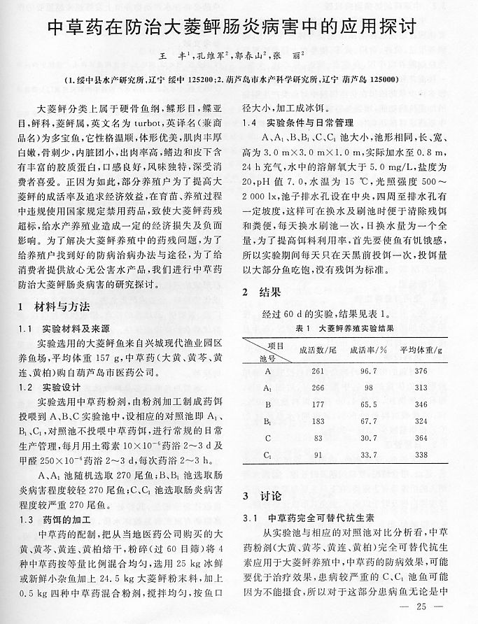 中草藥在防治大菱鲆腸炎病害中的應(yīng)用探討1