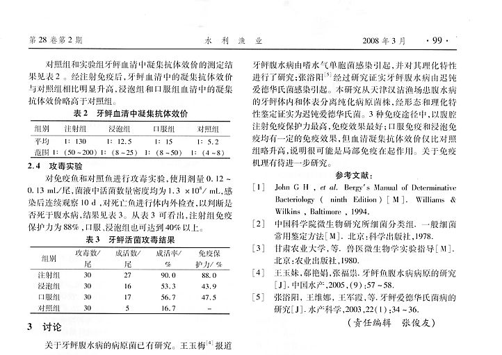 牙鲆腹水病病原及免疫學防治效果初步研究2