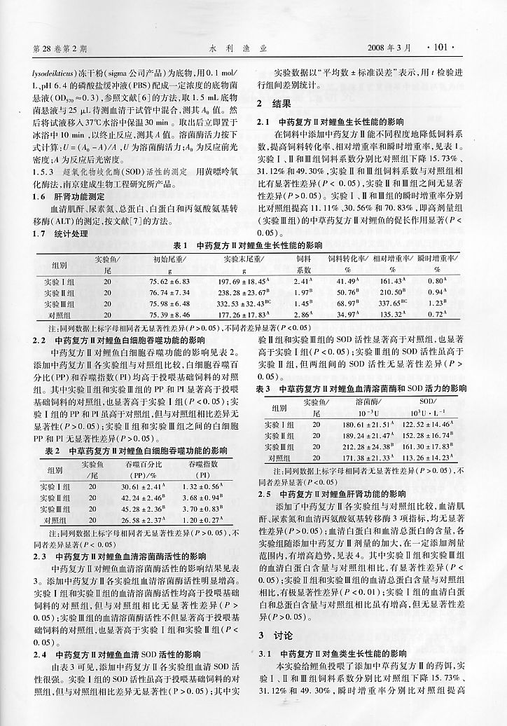 中藥復(fù)方II對鯉魚生長和免疫功能的影響2