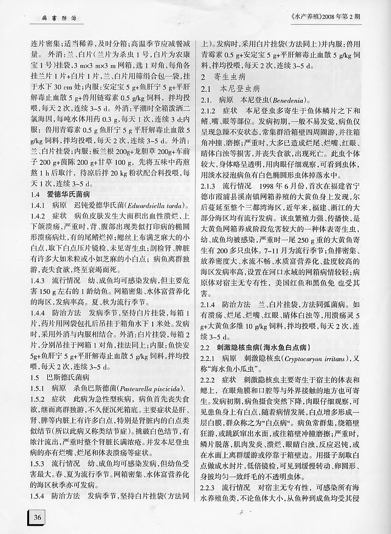 大黃魚網(wǎng)箱養(yǎng)成階段的主要病害與診治2