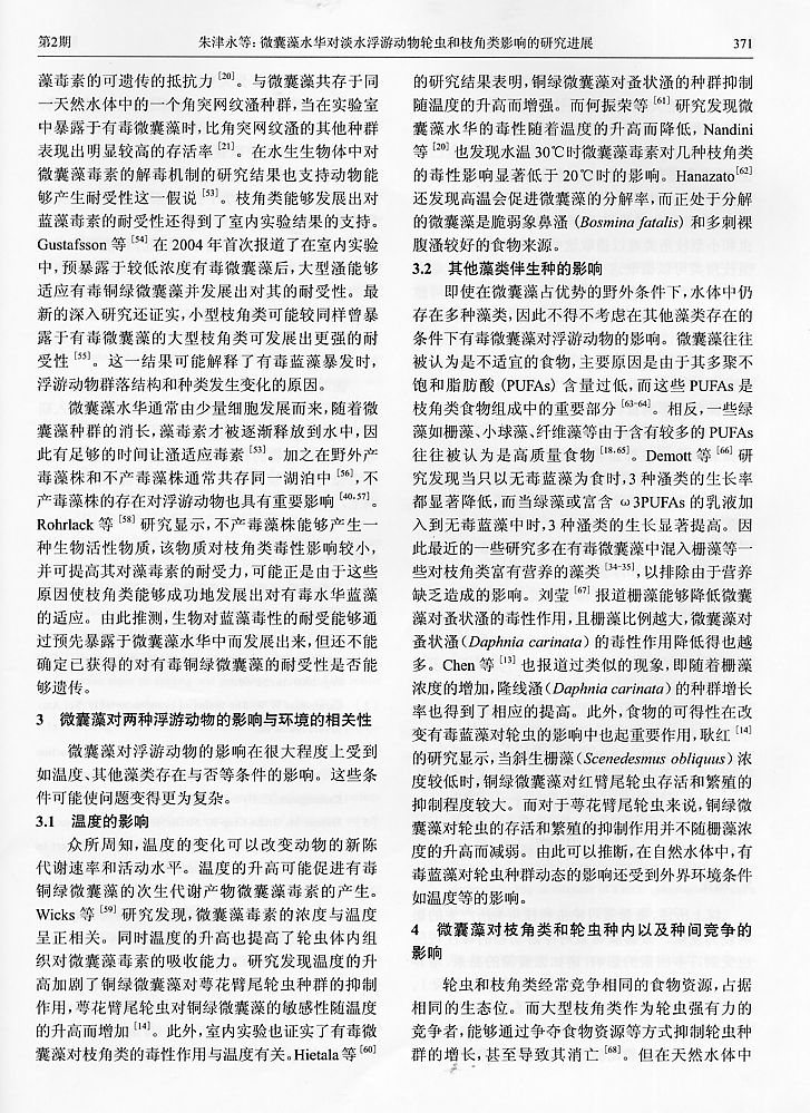 微囊藻水華對(duì)淡水浮游動(dòng)物輪蟲(chóng)和枝角類影響的研究進(jìn)展5