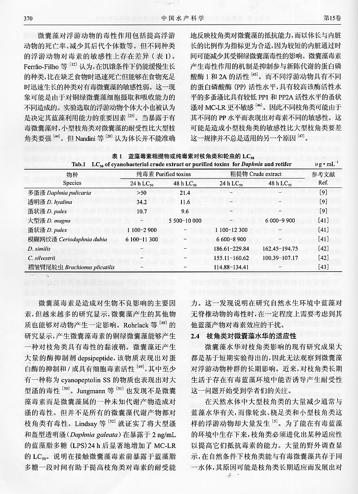微囊藻水華對淡水浮游動物輪蟲和枝角類影響的研究進展4