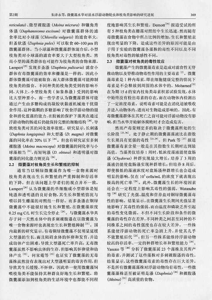 微囊藻水華對淡水浮游動物輪蟲和枝角類影響的研究進展3
