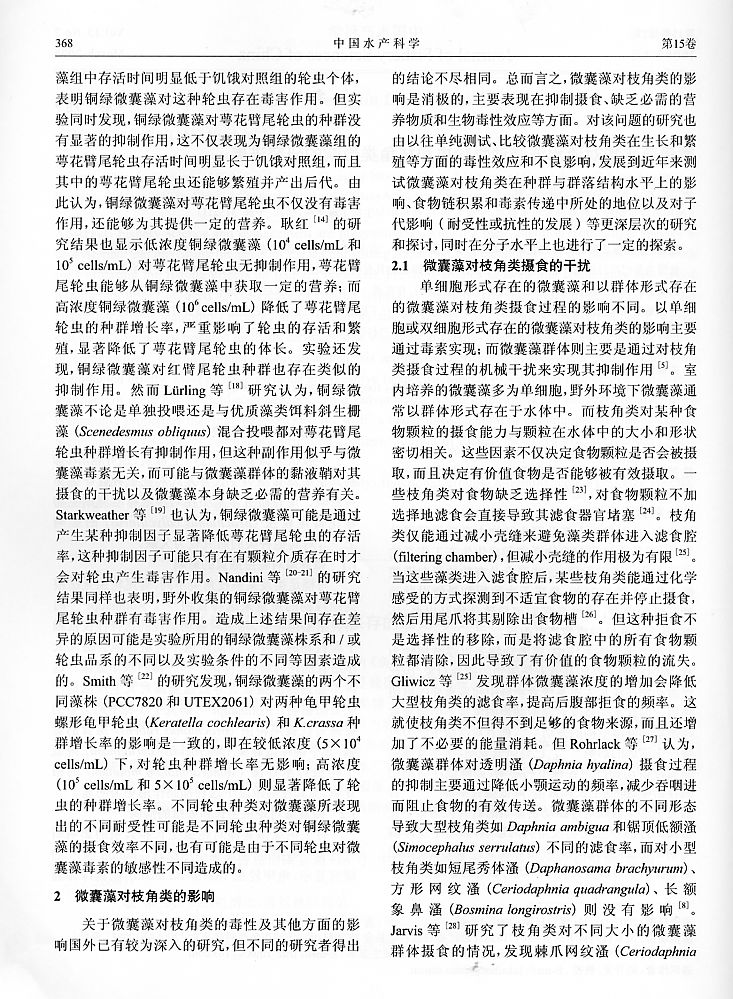 微囊藻水華對(duì)淡水浮游動(dòng)物輪蟲(chóng)和枝角類影響的研究進(jìn)展2