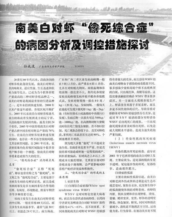 南美白對(duì)蝦“偷死綜合癥”的病因分析及調(diào)控措施探討1