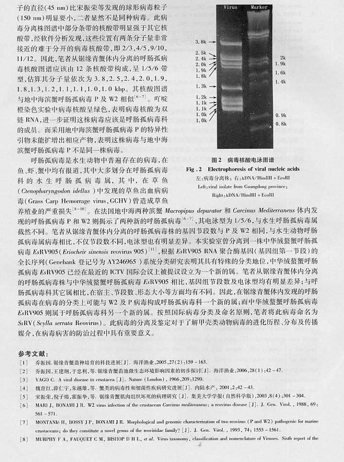 一株鋸緣青蟹呼腸孤病毒的分離純化及鑒定3