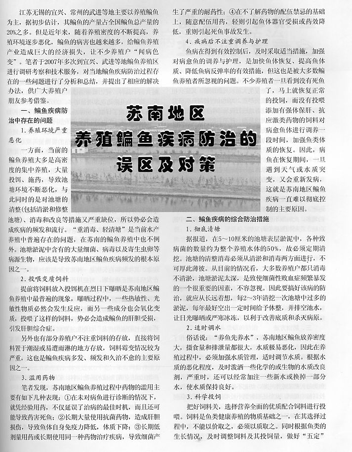 蘇南地區(qū)養(yǎng)殖鳊魚(yú)疾病防治的誤區(qū)及對(duì)策