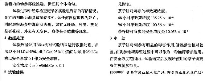 茶子餅對(duì)刺參急性毒性試驗(yàn)2